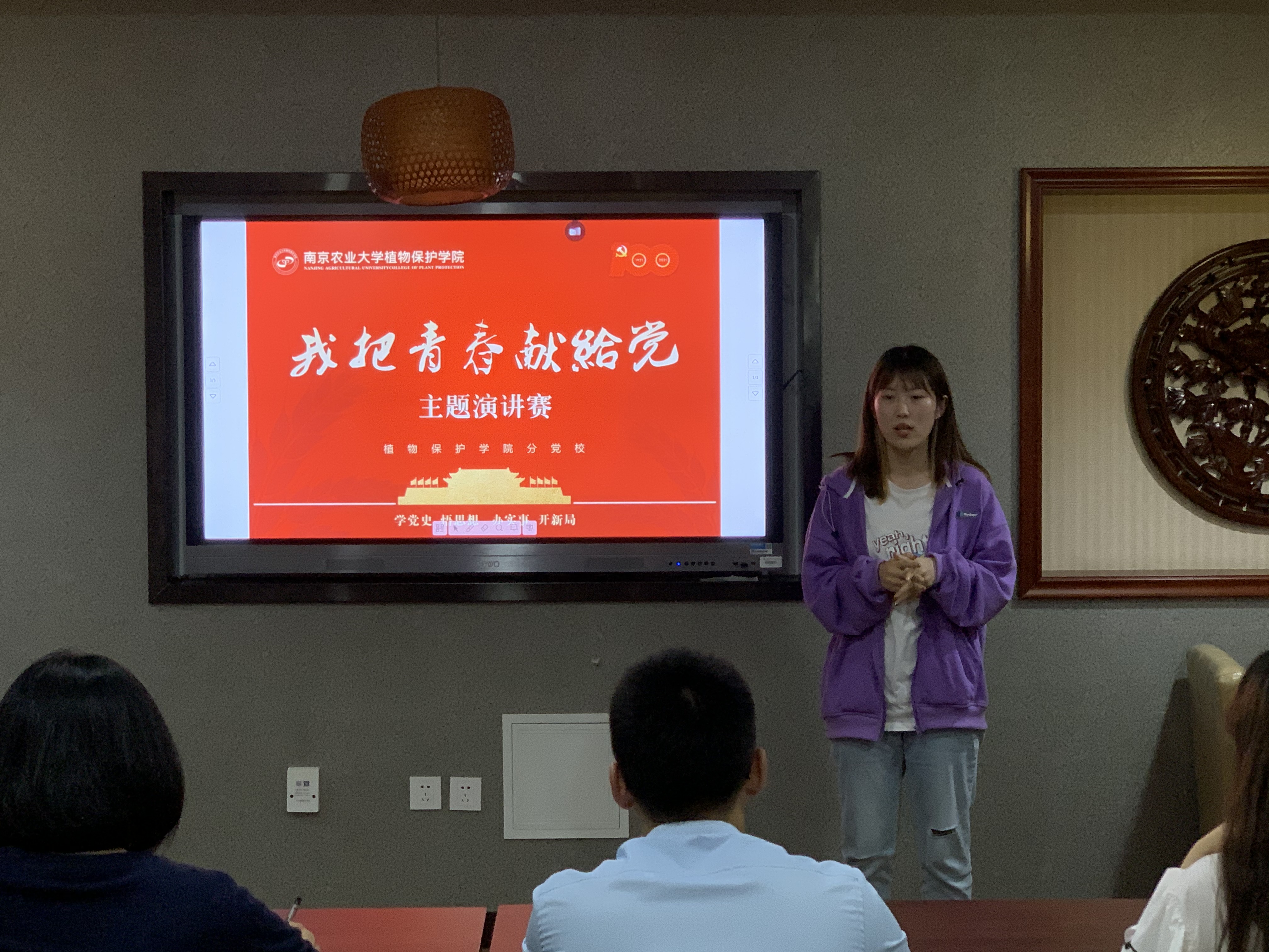 2021年5月21日晚,植保院在理科楼C408开展入党积极分子“我把青春献给党”主题演讲比赛决赛。13位选手同场竞技,学院党委副书记吴智丹,团委书记、本科生党支部书记李艳丹,团委副书记汪越,研究生辅导员罗舜文担任评委。