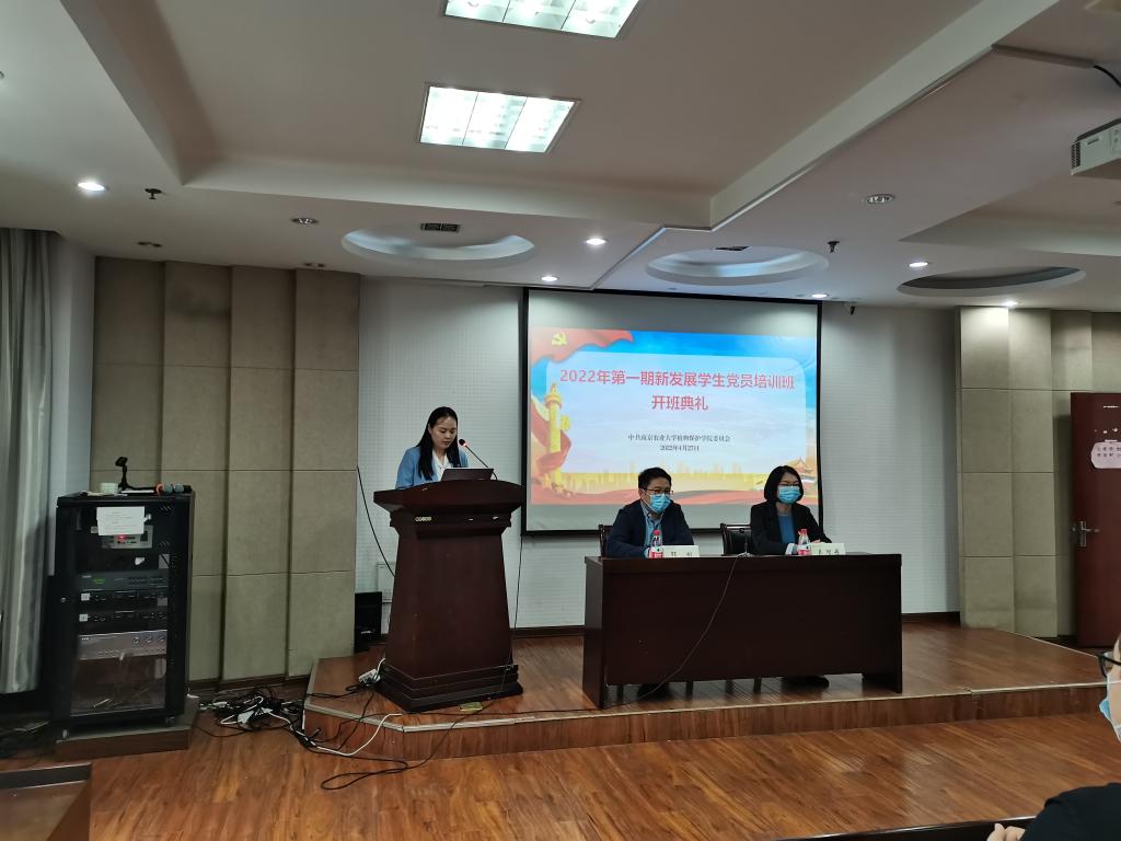分党校2022年第一期新发展学生党员培训班开班典礼在理科楼C303、C305举办。学院党委书记邵刚、党委副书记吴智丹出席,63名预备党员参加,开班典礼由本科生辅导员李艳丹主持。