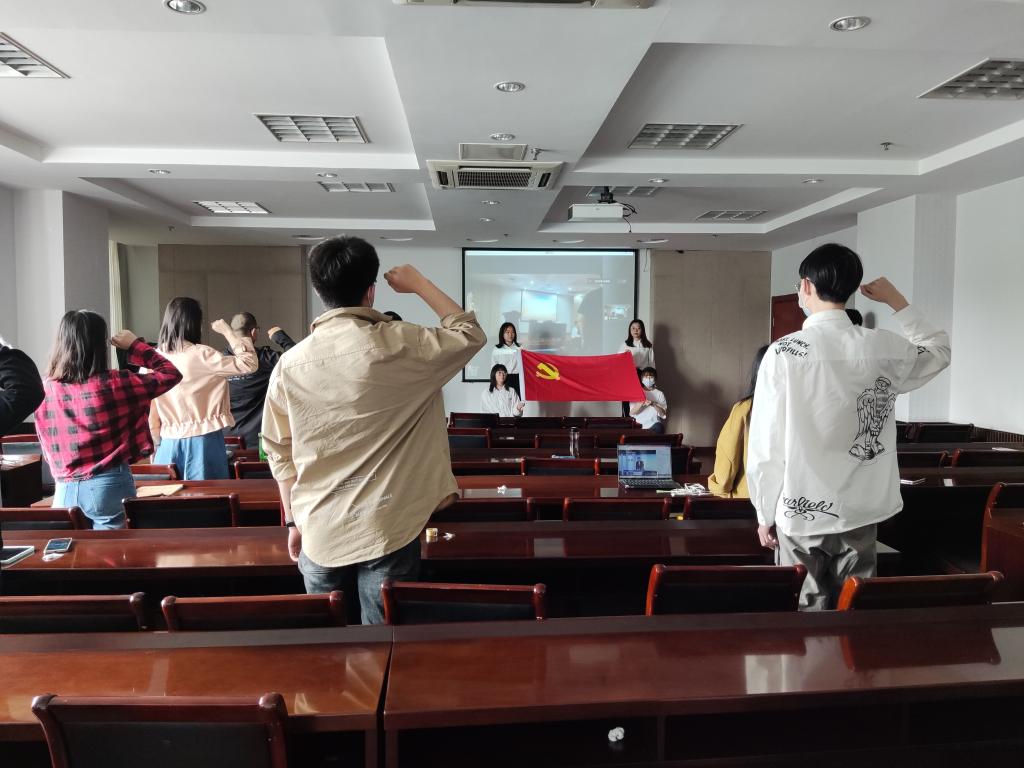 在雄壮的国际歌声中,开班典礼拉开帷幕,全体新发展党员面向党旗庄严宣誓。
