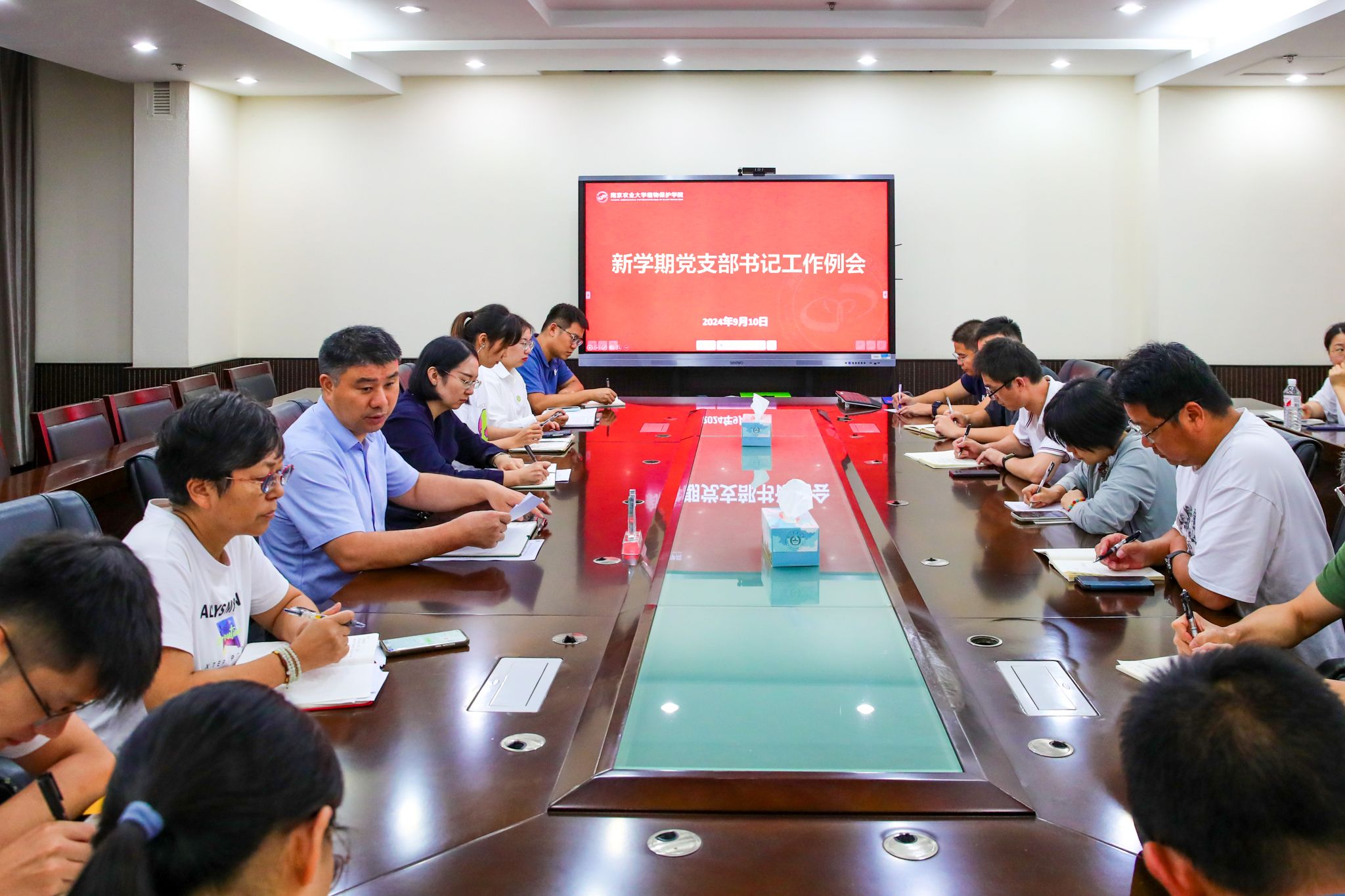 新学期党支部书记例会在理科楼C306会议室召开,研究部署新学期党建工作,推进基层党建工作走深走实。会议由学院党委书记许承保主持,学院党委副书记吴智丹、全体党支部书记参加会议。