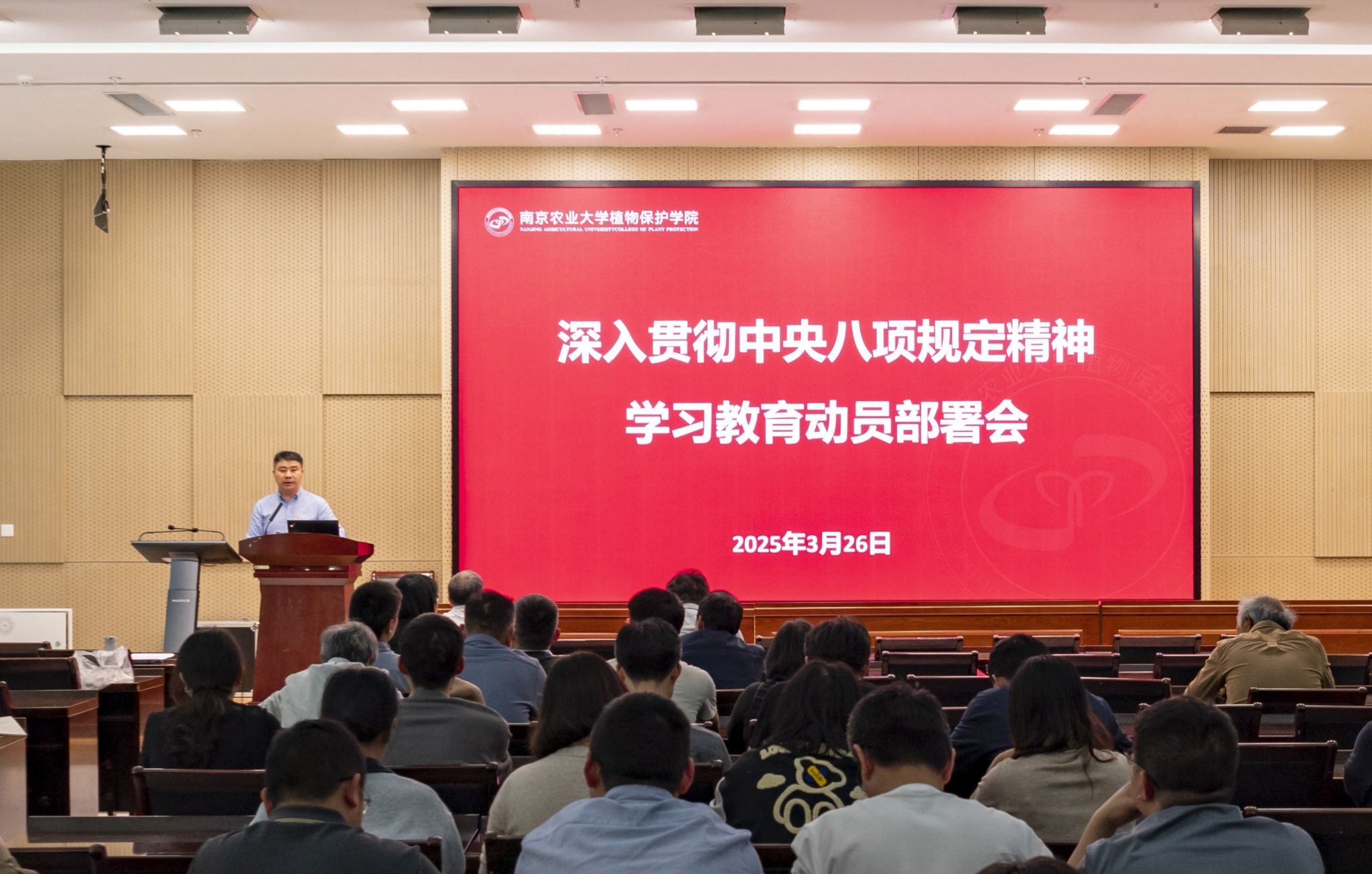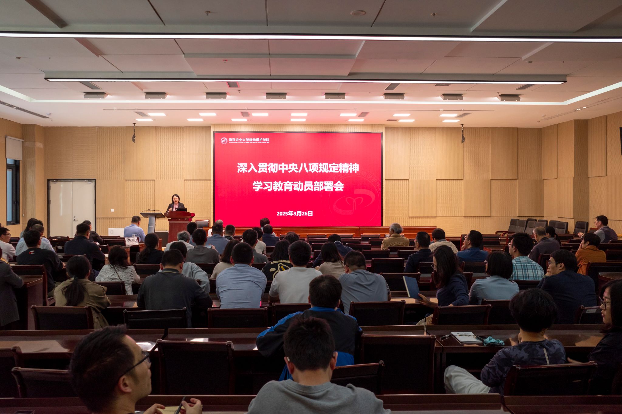 党委在滨江校区21号楼114报告厅召开深入贯彻中央八项规定精神学习教育动员部署会。学院领导班子成员、全体教职工参加会议,会议由党委副书记吴智丹主持。