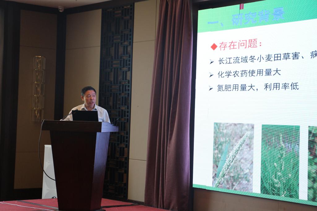 院长王源超教授主持,中国农药发展与应用协会除草剂专业委员会委员、江苏农学会杂草研究分会常务理事、宿迁市、县、区及乡镇农技人员、长江流域冬小麦药肥双减项目及课题3各子课题负责人及相关技术人员150多人参加了会议,由江苏省农业科学院、山东农业大学、安徽省农业科学院等9个单位的11位专家对国产自拍