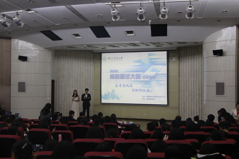 第四届模拟面试大赛企业专场决赛在图书馆报告厅拉开帷幕。比赛邀请到中化化肥有限公司江苏分公司总经理助理李震兴、苏宁云商集团股份有限公司校园招聘部经理林勃、南京中兴力维软件有限公司人事经理马晓媛、扬子江药业集团南京海陵药业有限公司招聘经理许淑鑫、苏食集团行政主管郭添玥、杭州群丰果品连锁有限公司南京城市运营经理陆毅担任评委。本次比赛由学生工作部(处)主办,国产自拍