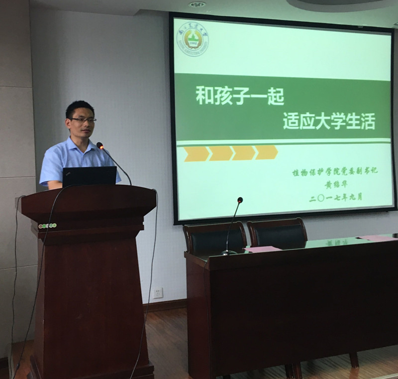 9月9日,下午两点半于理科楼C303开展新生家长会。植保院诚邀各位新生家长,由党委副书记黄绍华主持,院长,辅导员及各位班主任出席本次会议,为家长们答疑解惑。