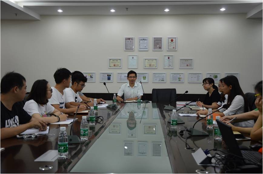 党委副书记黄绍华、辅导员吴智丹、上届研分会主席胡媛媛、现任主席高博雅,研分会所有成员参与此次大会,会议由组织部部长陈辉主持。
