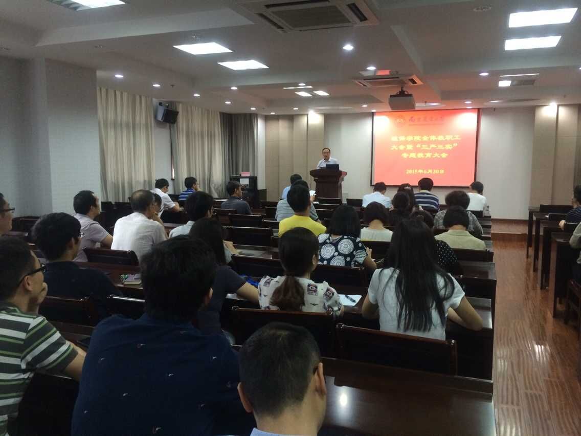 随后,吴益东书记就“三严三实”向全院党员教职工作专题报告。他从产生背景谈起,介绍了“三严三实”的丰富内涵,并以正反实例详细解读了在高校中如何落实“三严三实”,如何体现党员、尤其是党员干部的模范引领作用。吴书记提出,在价值观多元的今天,党员要做到“六个表率”,严格要求自己,以中国梦为己任,将“三严三实”精神内化于心,外化于行,引领时代发展,真正体现党员在社会发展中的价值与力量。