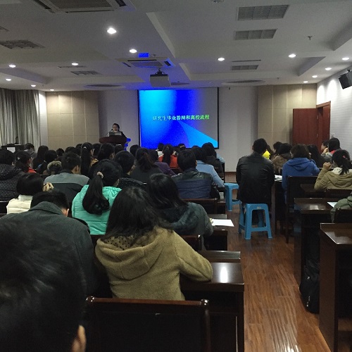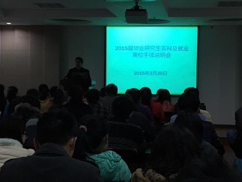 研究生分会主办的2015届毕业研究生答辩及就业离校手续说明会在理科C303举行。院党委副书记黄绍华、研究生辅导员吴智丹、研究生教务秘书岳丽娜为应届毕业生们带来了详尽实用的“毕业攻略”。 黄书记侧重于介绍今年的招聘情况,“求职攻略”告诫大家不要眼高手低,把握好方向,农业起薪虽然较其他行业偏低但努力工作也会有很好的前景。同时,黄书记还鼓励大家自主创业,响应两会号召,表示只要有好的创业或基层项目,学校和学院都会大力扶持的。此外,黄书记还提醒了一下毕业期间的安全问题,要大家注意外出安全和聚会安全。 吴老师就就业协议书、毕业相关表格的获取与提交进行了说明。“档案攻略”包括:报到证、就业协议书、档案和党组织的去向以及挂靠方式、户口等方面。吴老师逐条进行了讲解,力保大家做好走上工作岗位的准备工作。同时,吴老师还指导应届毕业生们如何查询档案动向、如何查询研究生就业相关网站。吴老师给研究生组建了QQ群,方便大家相互交流工作上的心得并联络感情,这也是老师给植保院每个学生的财富。 岳老师就博士毕业生和硕士毕业生的毕业答辩流程以及相关问题进行了讲解。“答辩攻略”包括:论文抽检时间,如何获取毕业相关表格以及如何正确填写、论文写作须知、获得学位证的文章要求、如何正确处理文章接受与学位证之间的时间冲突等等使用的提醒。 植保院研究生大家庭人数众多,老师们作为守护者,对每一位毕业生都抱有期盼,希望植保院走出来的每一位研究生都拥有最美好的未来,过上自己最幸福的人生。