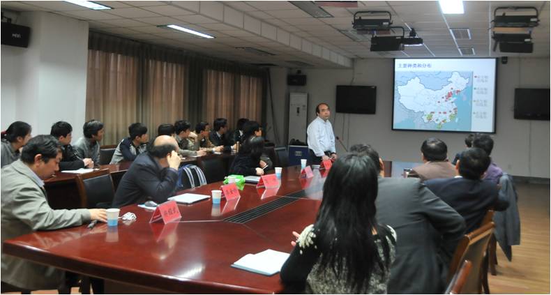 课题主要负责人李红梅教授、淮阴师范学院李师默博士、淮阴农科所顾大路研究员先后介绍了当地根结线虫病的发生危害情况以及项目组开展的试验和示范内容,项目专家组在充分肯定了试验示范工作成效的同时,就项目今后如何进一步合理设计、规范管理、简化操作、提高农民收益等方面给出了一系列切实可行的建议。之后项目专家组成员与当地植保技术人员在淮阴师范学院开展了座谈,项目首席专家简恒教授就当前我国根结线虫总体发生分布、流行规律、致病机理等进行了介绍,同时对现有防治技术的优劣进行了分析比较,并与相关技术人员就完善适合当地种植模式的根结线虫病防控技术进行了深入的探讨。