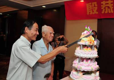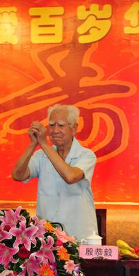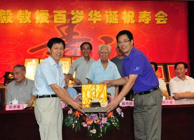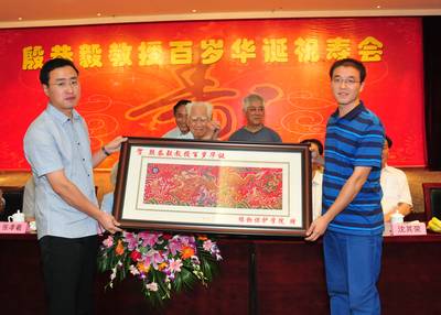 为殷老举办的百岁华诞祝寿会,感谢父亲用严格、正直、节俭和科学培养了他们。