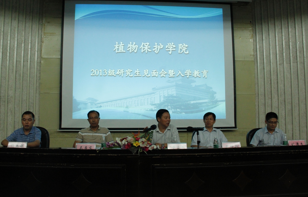 2013年9月10日下午,植保院2013级研究生见面会暨入学教育大会在图书馆报告厅成功举行。院党委书记董立尧、院长吴益东、农药系教授周明国及昆虫系教授刘泽文出席会议,会议由副书记许再银主持。