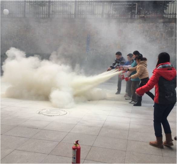 师生的消防意识,提高师生对出现火灾的应急扑救处置能力, 2013年12月18日下午15:00在理科楼C303校保卫处刘老师做了有关校园消防安全的讲座,并在讲座后实际演练如何使用灭火器。