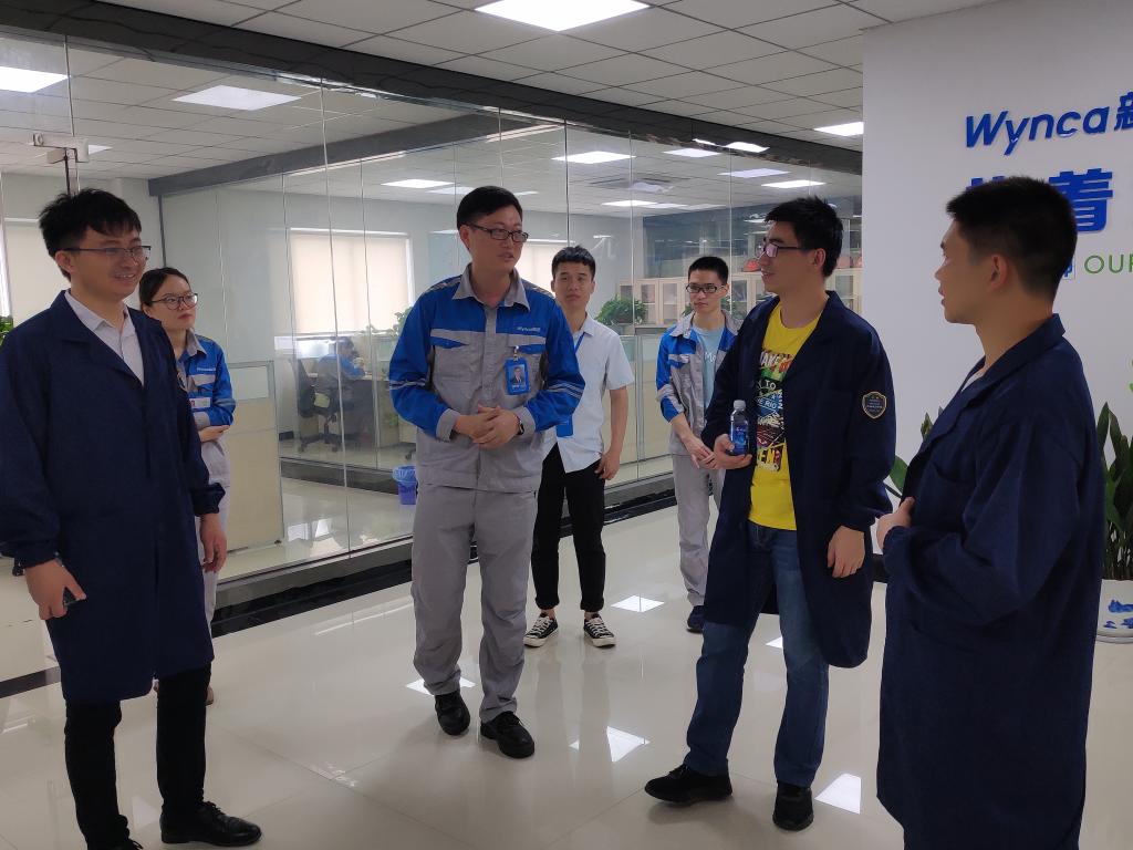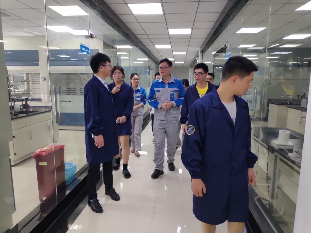 座谈后,在研究所副所长钱志刚和2018届校友童辉的带领下,张峰一行参观了新安集团的马目园区,见识了智能现代生产管控一体化模式。