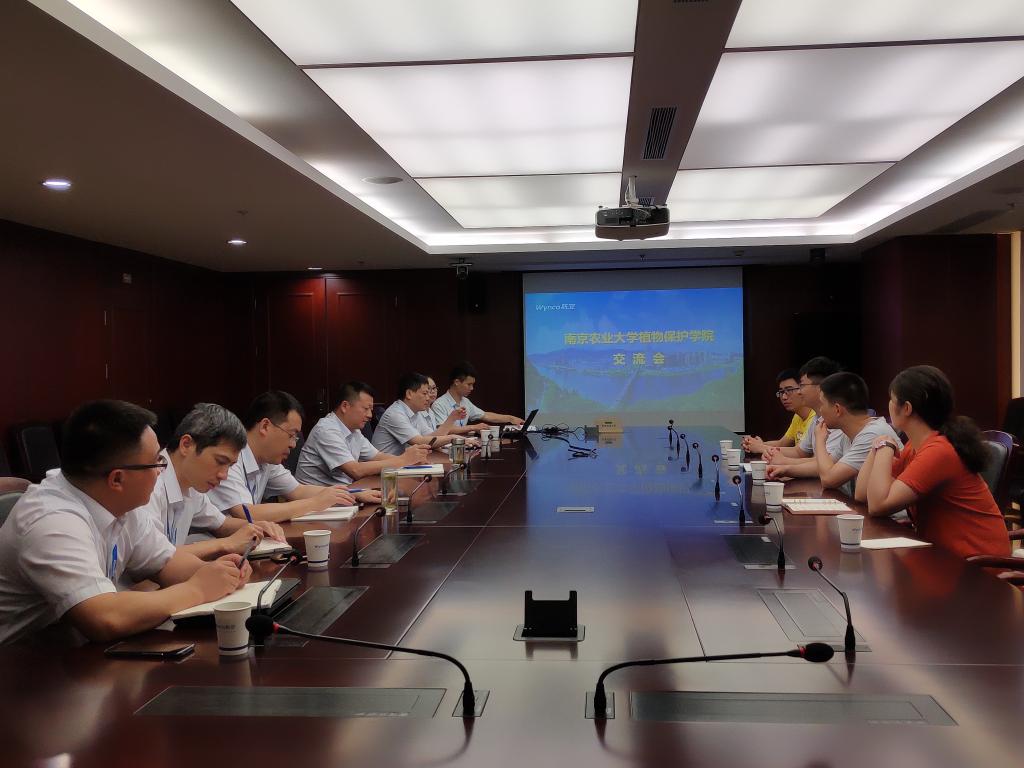 7月22日,张峰一行与浙江新安化工集团农业服务部副总经理陈建红、研究所所长秦龙、人力资源副总监吴宗生、运营副总经理黄云鹏等进行座谈,听取公司发展概况及主要产品介绍,双方深入探讨农业现代化背景下农药的研发、生产、销售和植保技术服务于一体的发展模式存在的问题及行业未来发展前景,并就人才招聘、学生实习、就业指导等校企深度合作事宜展开探讨。