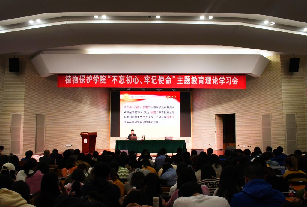 10月29日下午,植保院“不忘初心、牢记使命”主题教育理论学习会在大学生活动中心举行。江苏省委党校二级教授、江苏省委党的十九大精神宣讲团成员徐民华,应邀作题为《新时代中国共产党的历史使命》的专题报告。全体在校师生党员和党建班学员近400人参加学习会。学习会由副院长王兴亮主持。