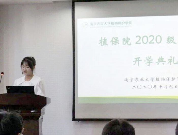 王舒桐同学代表新生发言,以一名新生的角度解读大学,立志成为以强烈爱国心为基础的,有素质、有知识,为社会、为国家做出贡献的植保人!