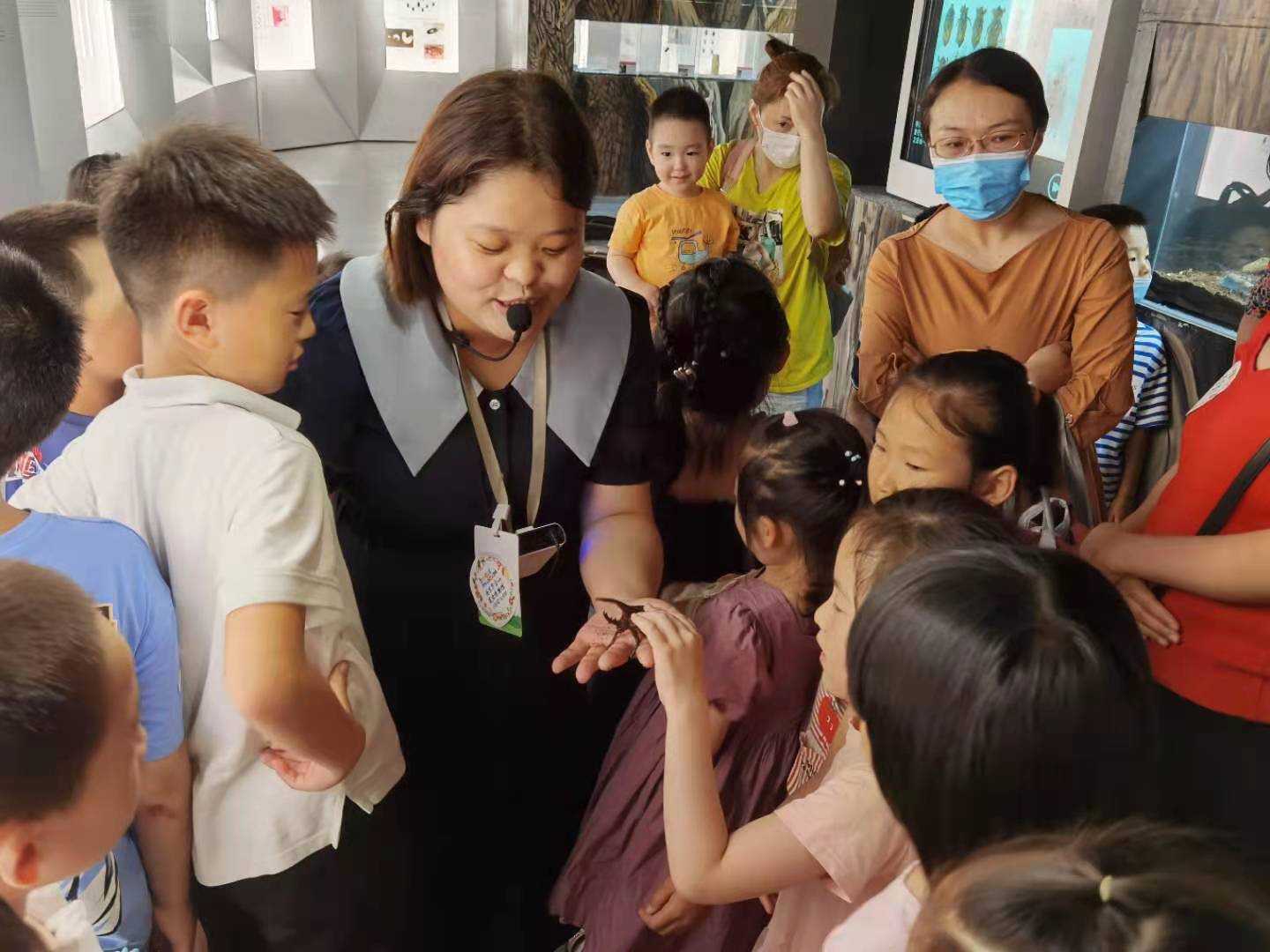 博物馆工作人员带大家领略了昆虫基本知识、昆虫多样性厅、鳞翅目昆虫厅、鸣虫文化厅、昆虫行为厅、社会昆虫和水生昆虫厅,昆虫与人类社会厅,以及活体昆虫展示区,深入浅出地从各个角度介绍了昆虫的基本形态、生活环境、主要类群、与人类的关系。并邀请大家体验了黑暗空间、夜行动物和两栖爬行动物。小朋友们认真专注地听着讲解,积极兴奋地探寻展厅中的昆虫和两栖动物,惊艳于昆虫世界的多姿多彩和神秘莫测。