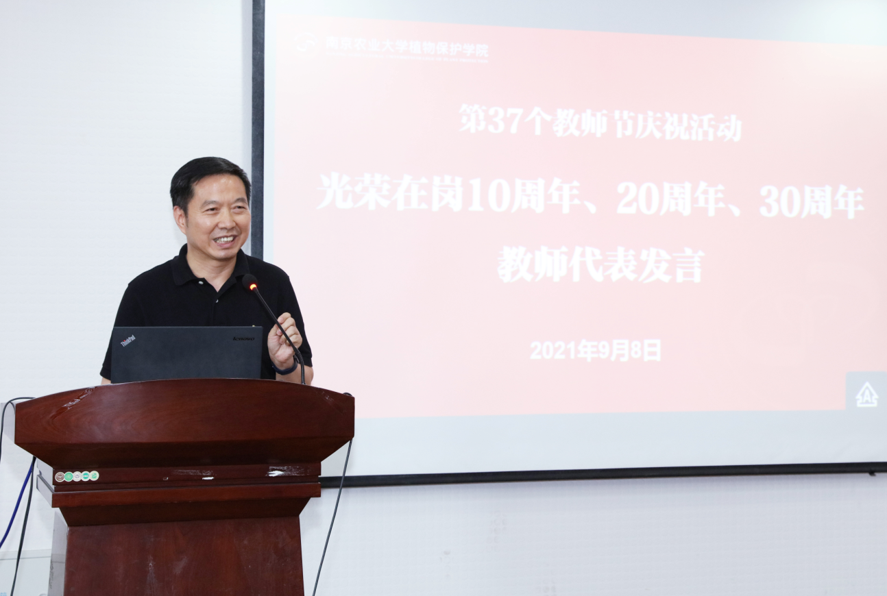 学院党委书记邵刚和院长张正光为到场的光荣在岗10周年的王欣、吴智丹、张海峰、侯毅平、郑颖、马洪雨等老师,在岗20周年的姜卫华、李保平两位老师以及在岗30周年的洪晓月、孙长海、郎志飞三位老师颁发了纪念奖杯。洪晓月、李保平、马洪雨分别作为代表分享感悟。
