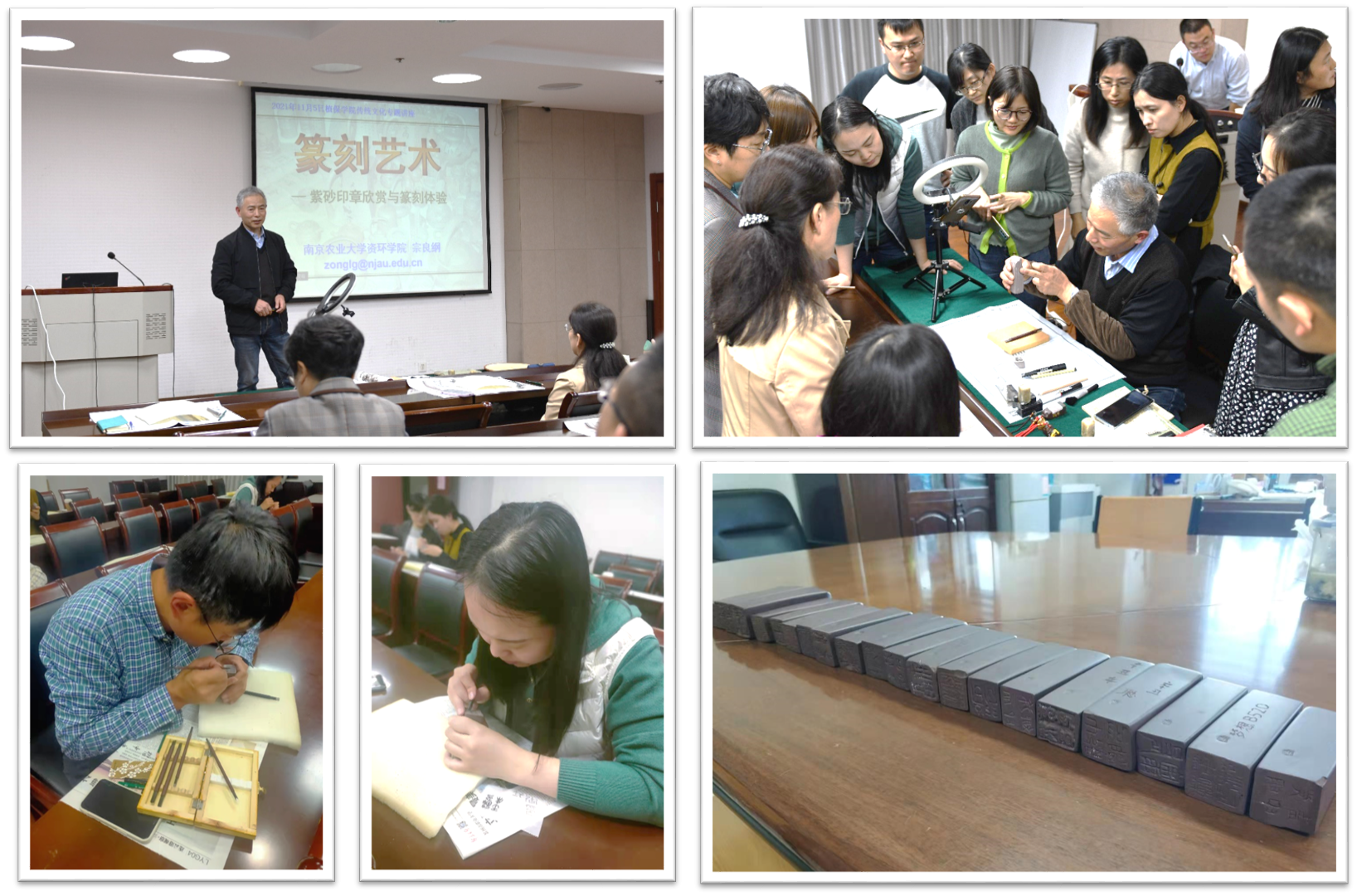 工会主办的紫砂篆刻艺术体验活动在理科楼C305举行。活动特邀资环院宗良纲教授作为主讲嘉宾,院党委书记邵刚主持。