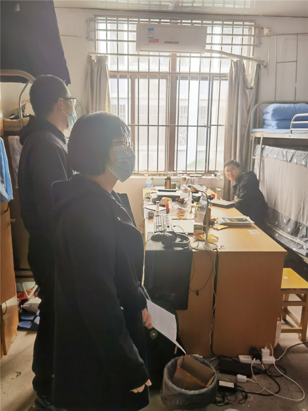 会议结束后,参会人员走进本科生宿舍,开展常态化宿舍走访工作。