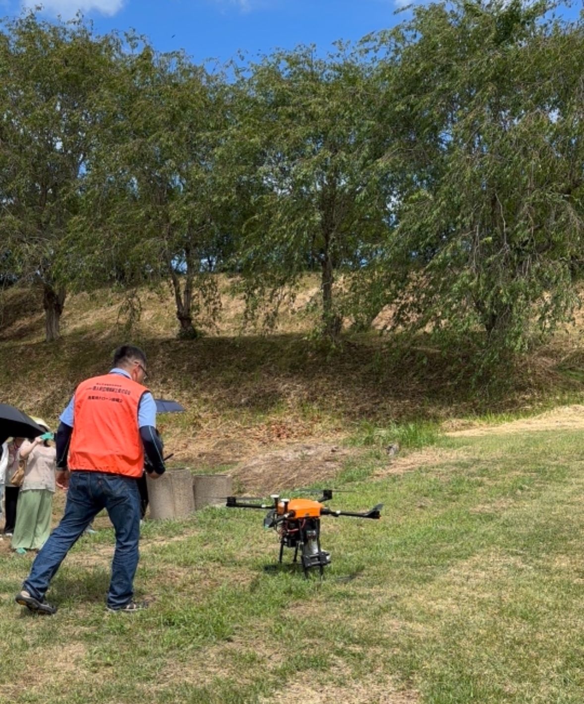 工作人员在给同学们演示无人机