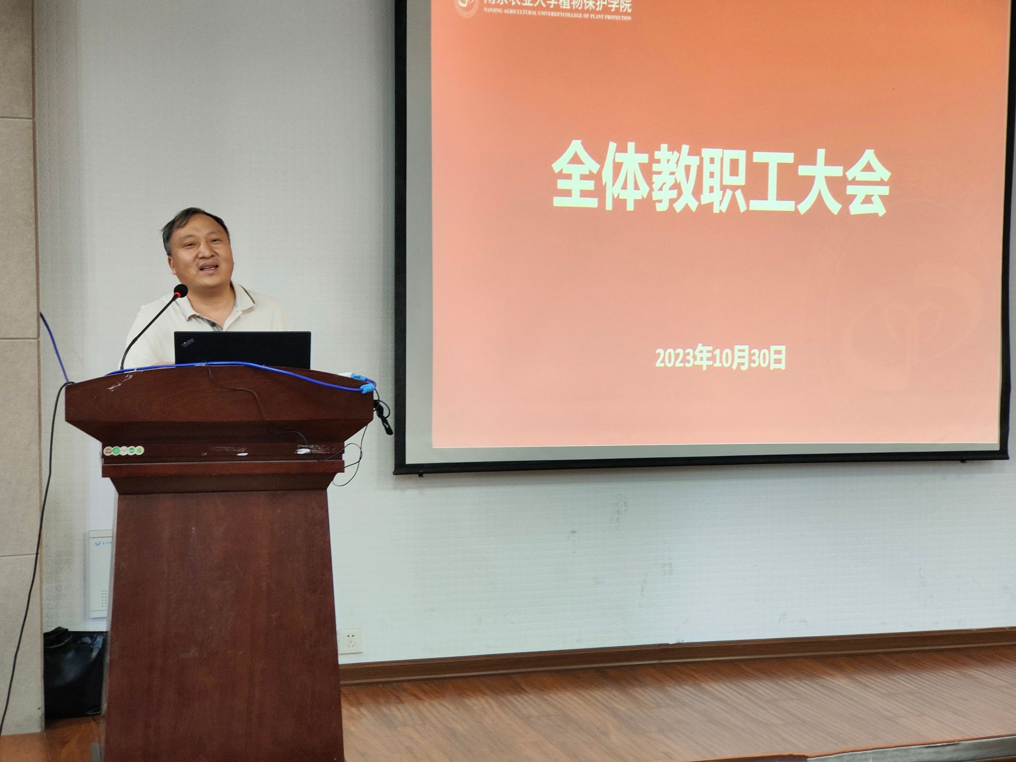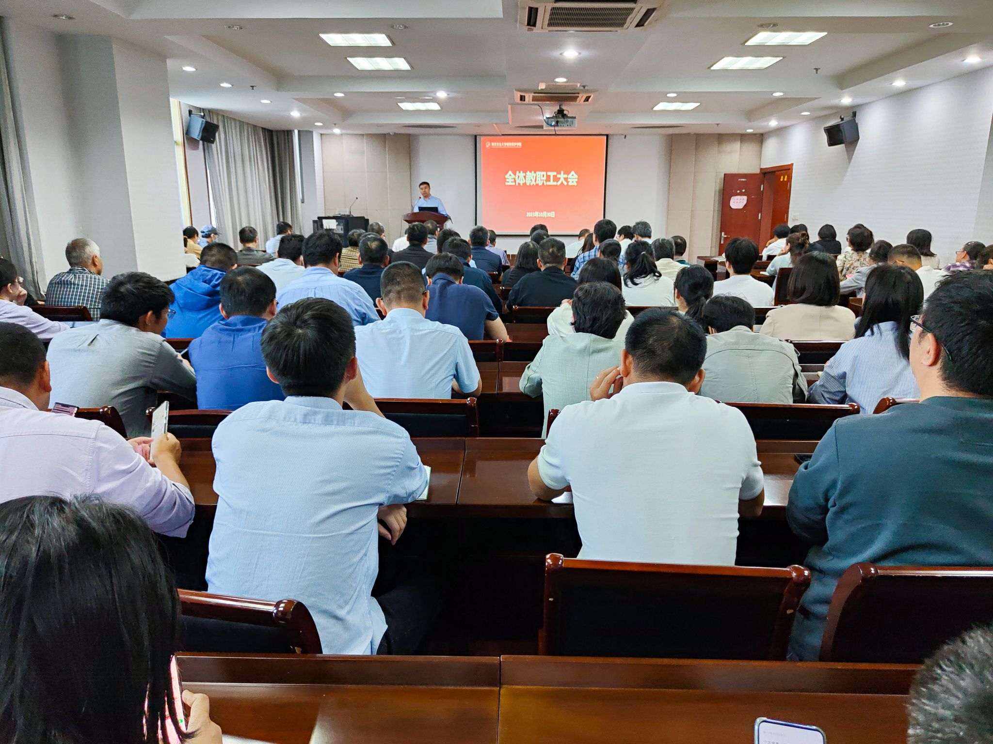 在理科楼C303会议室召开全院教职工大会,学习传达学校党委第六轮巡察工作动员部署会精神。学院领导班子及全院教职工参加会议,会议由党委副书记(主持工作)许承保主持。