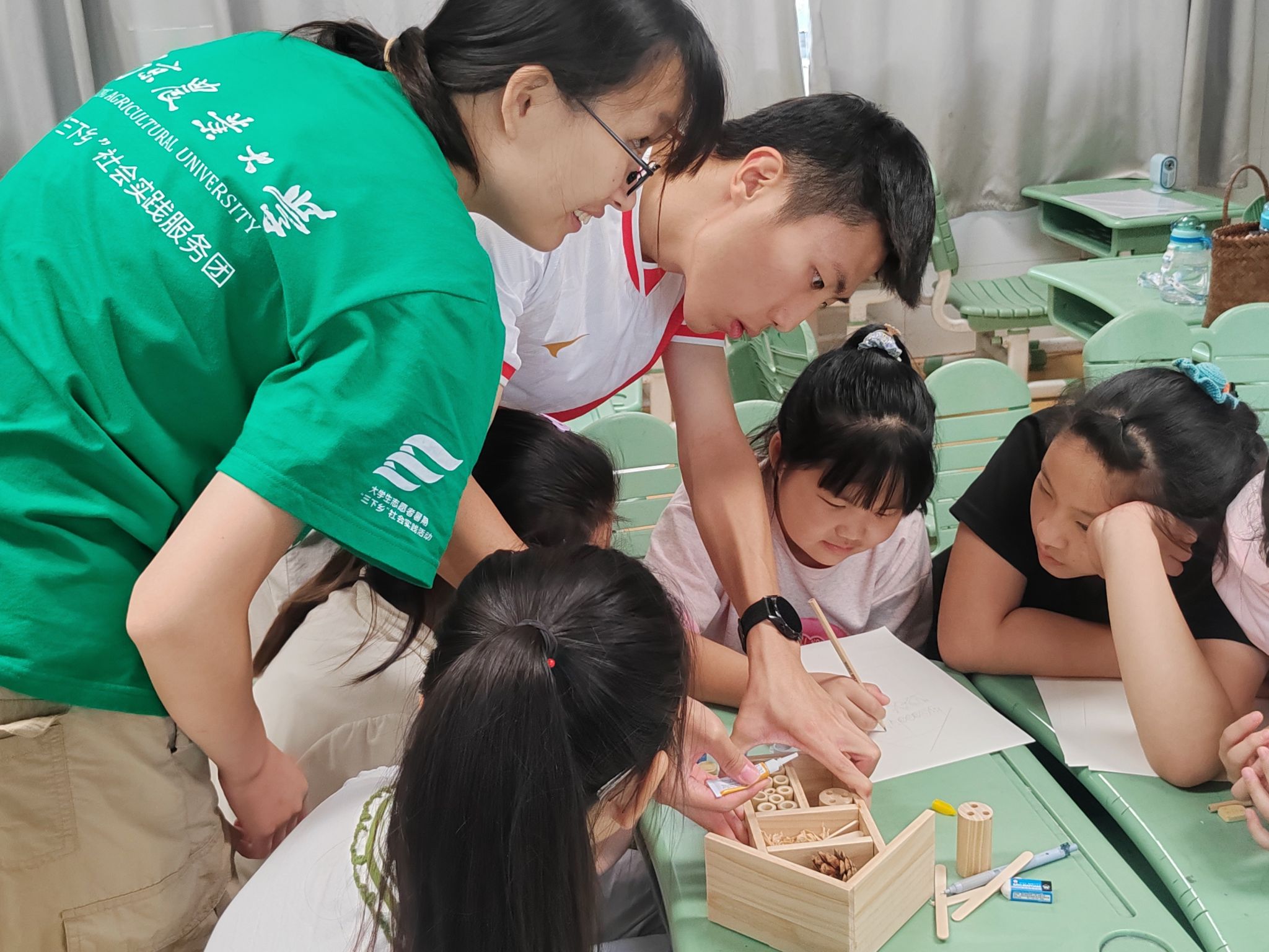 “汶溪田野,生态育人”实践团在专职团干部夏健鑫指导下,联合南京市高淳区汶溪小学,面向三到五年级学生开展暑期研学实践活动。此活动旨在引导孩子们认识植物、昆虫与环境的相互关系,树立保护生态环境、爱护绿色家园的意识,培养科学思维、观察能力和实践技能。