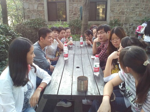 同学们分成了三个小分队,随着班长的一声令下,各小组在队长的带领下从紫金山脚下出发,争先恐后,勇攀高峰。这个季节的紫金山格外妖娆,同学们边爬边欣赏风景,暂时忘却了比赛。一路上走走停停;同学们有说有笑,互帮互助,增进了友谊。在半山腰进行了小组活动,按小组进行自我介绍,并进行了“一个青蛙两只腿”、“猜谜语”、“脑筋急转弯”等活动。