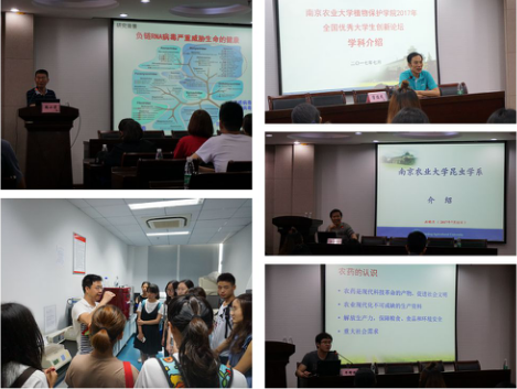论坛期间,学院植物病理学系陶小荣教授受邀作植物病毒学方向专题报告。植物病理学系窦道龙教授、昆虫学系洪晓月教授、农药科学系华修德副教授作学科及实验室介绍,并与学生交流互动。公共实验中心马洪雨副教授带领学生参观实验室,并作详细讲解。