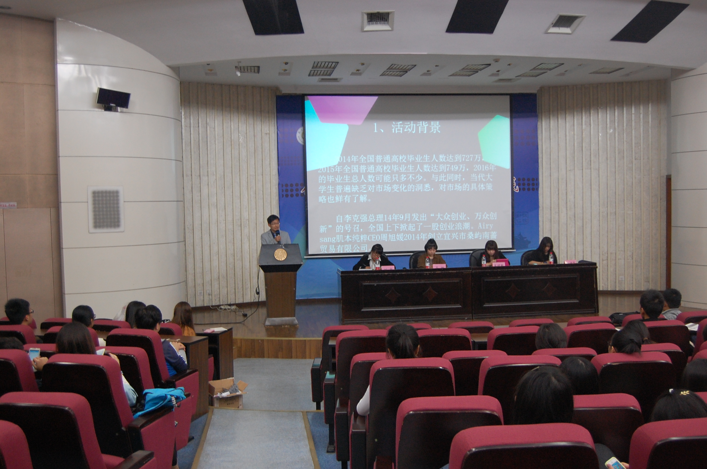 高洪礼直入主题,对本次营销大赛流程、具体营销方式、评选方法及奖励设置进行说明。他指出在现如今就业压力巨大而当代大学生却普遍缺乏对市场变化的洞悉的背景下,本次活动能够给予他们一个锻炼自我,提升自我的平台,从而提高他们竞争能力去迎接未来的挑战。袁伊敏从Airy sang的品牌理念“No miss no missing不负青春不负卿”入手,解读产品内涵。杨倩雯主要介绍了本次大赛比赛用产品及其构成成分、适应人群和竞争优势。三位嘉宾细致解读了本次大赛的流程及内容,并从不同角度,为参赛选手提供了营销思路。