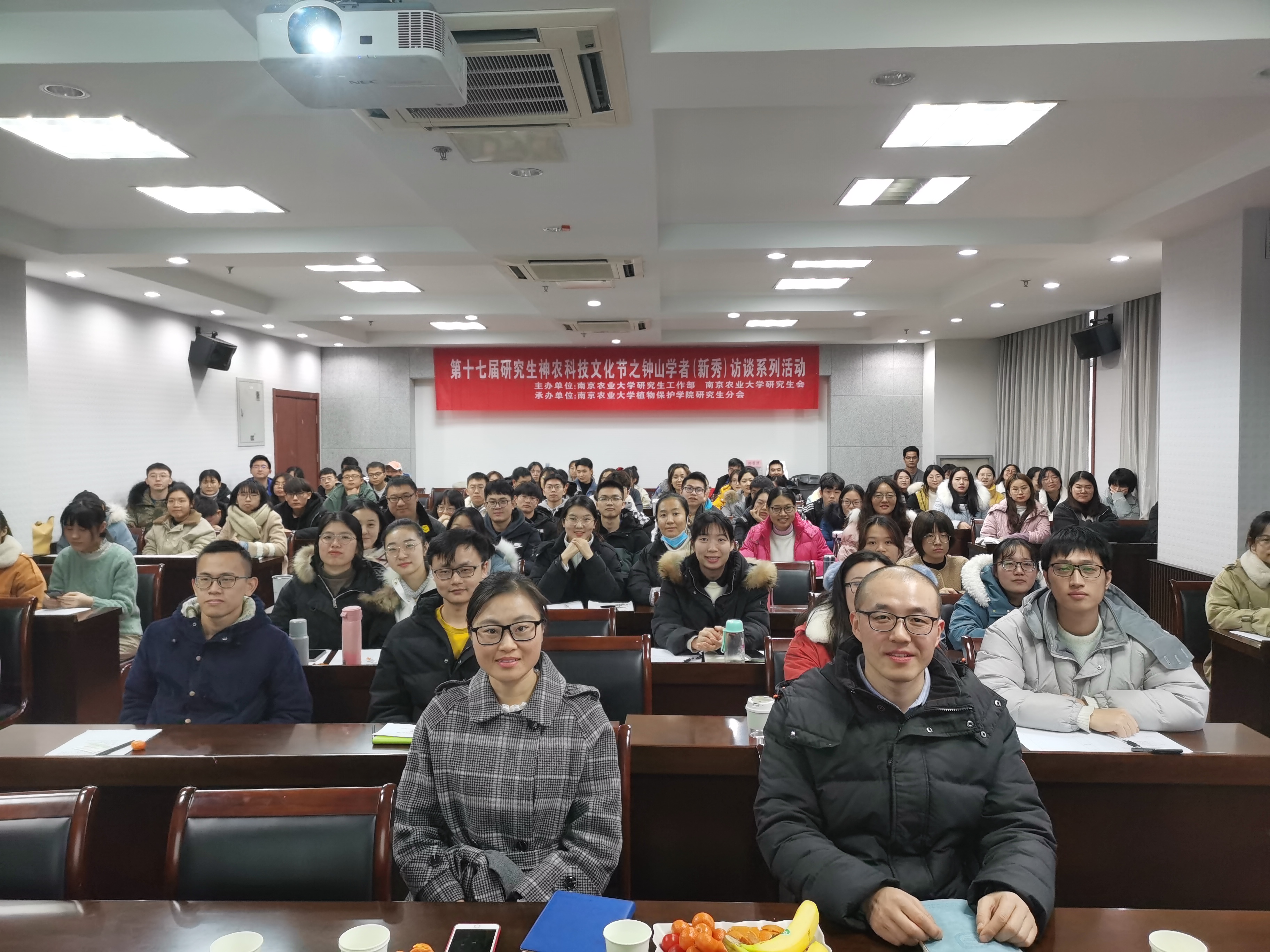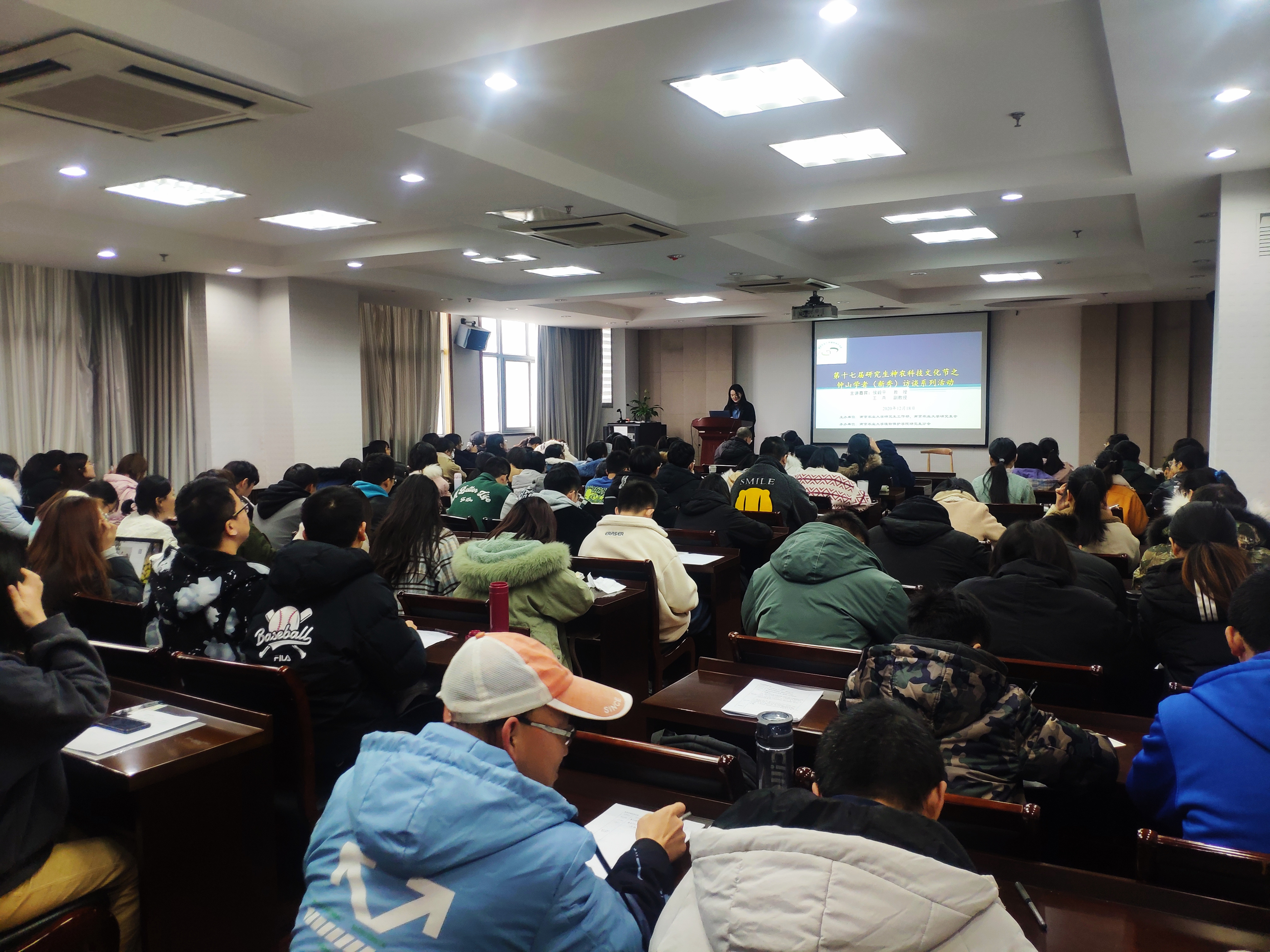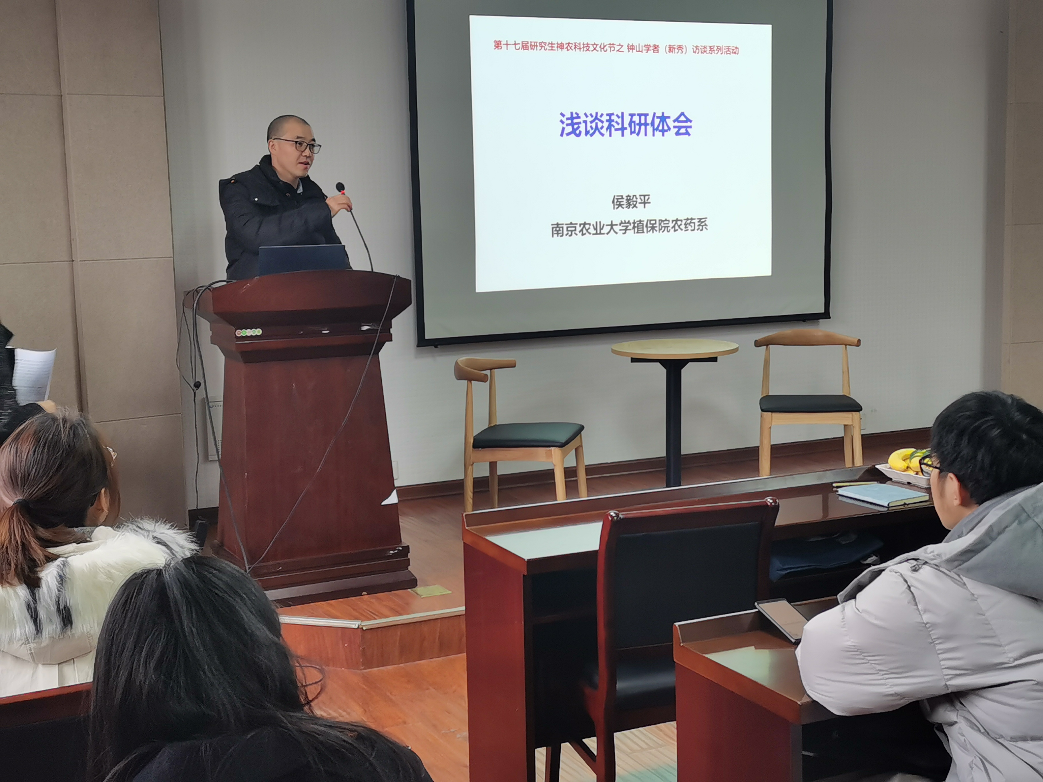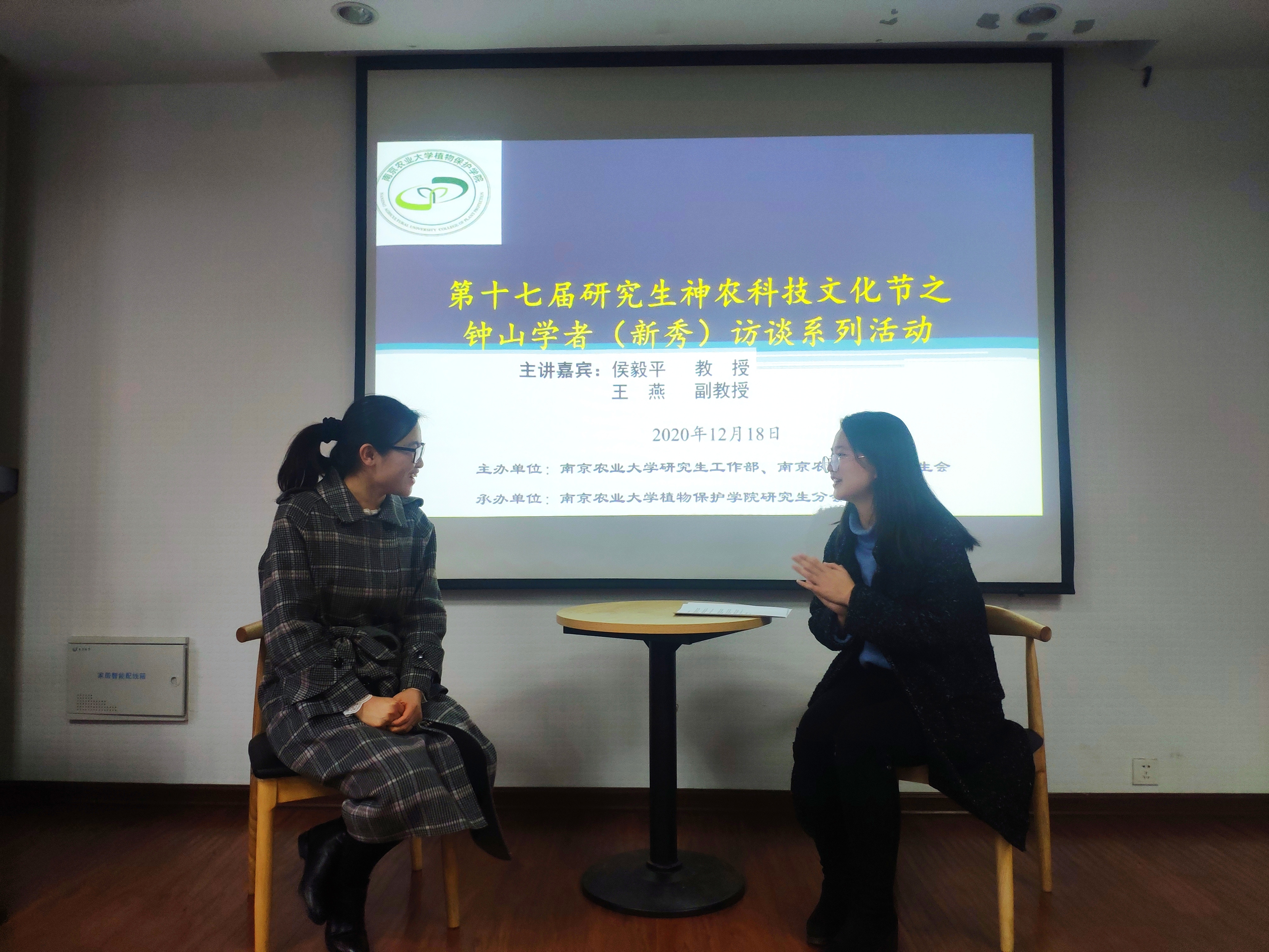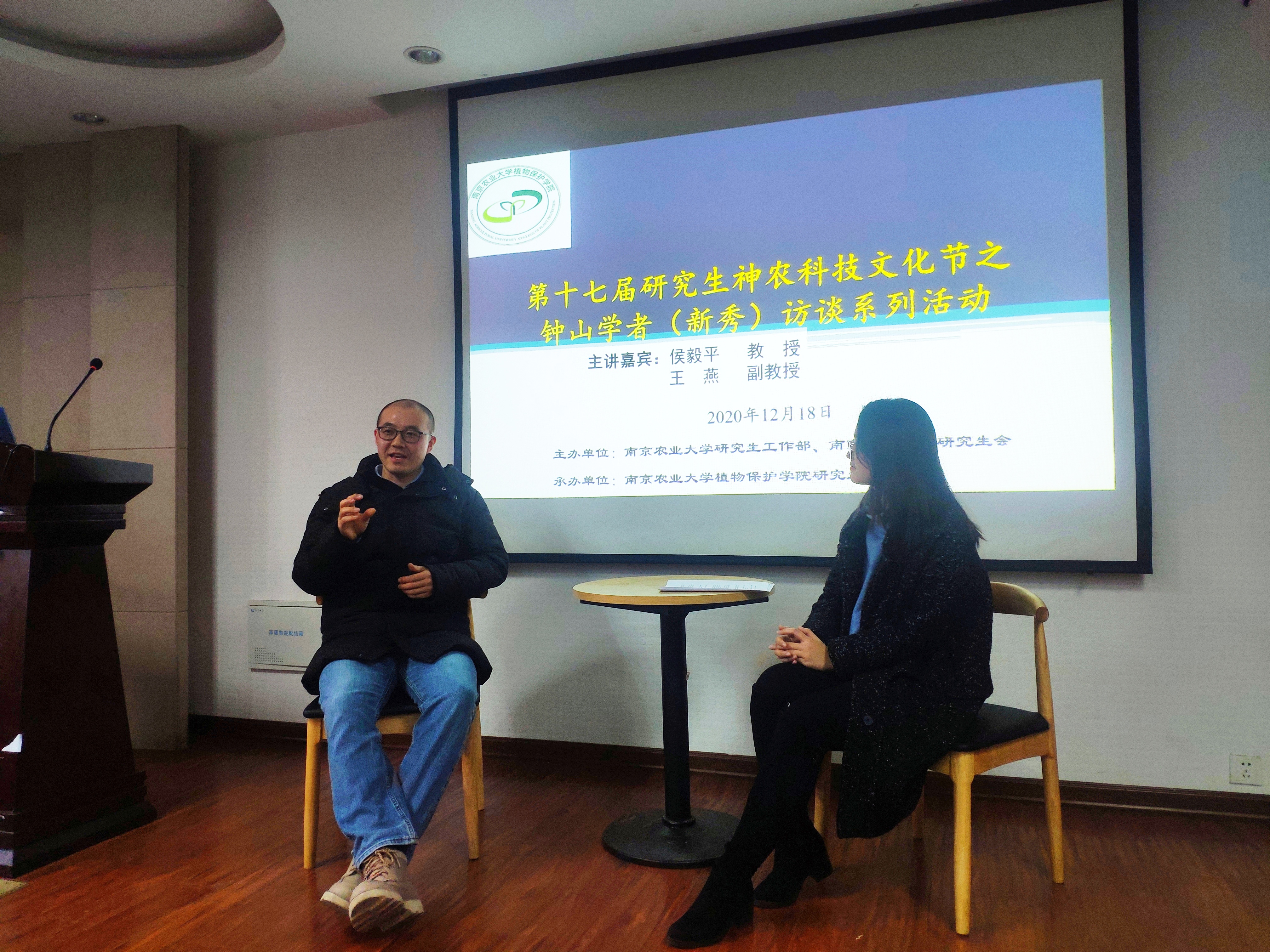 专场)在理科楼C303成功举办,钟山学术骨干、农药系侯毅平教授和钟山学术新秀、植物病理系王燕副教授做客钟山学者(新秀)访谈现场,120余名研究生参加了本次访谈活活动,活动由吴双同学主持。