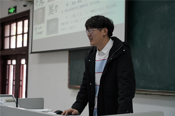 王誉茜首先进行宣讲,她从南农校园内的建筑及本人于南农的学习经历出发,生动讲述了南农的百年历史并向同学们提出了“知校史、行校训、明校情、扬校风”的号召。