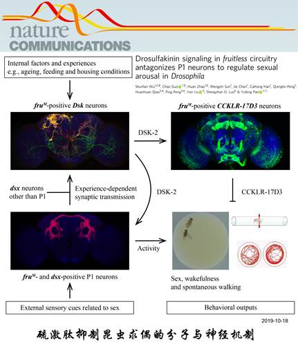 研究结果“Drosulfakinin signaling in fruitless circuitry antagonizes P1 neurons to regulate sexual arousal in Drosophila”于2019年10月18日以长文形式发表在Nature Communications杂志上。国产自拍