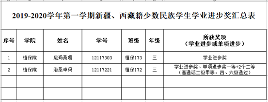 经学生申请、材料审核,现将2019-2020学年第一学期新疆、西藏籍少数民族学生学业进步奖评定结果公示如下: