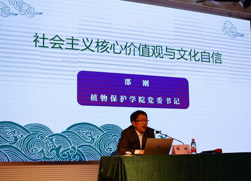 “社会主义核心价值观与文化自信”专题党课在教四楼报告厅准时开讲。本次党课由学院党委书记邵刚讲授,全体学生党员参加。