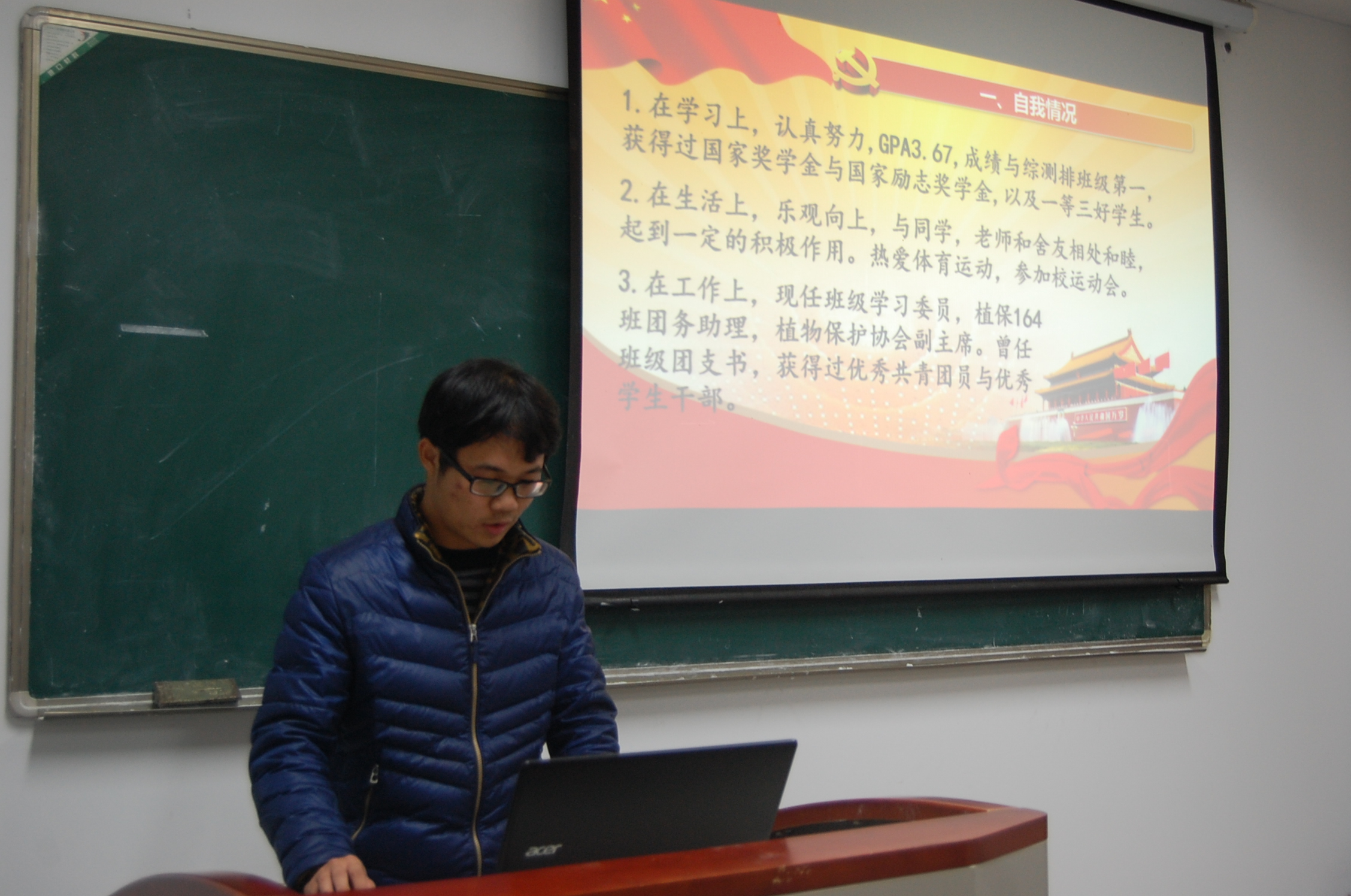 经过层层选拔,共有20名优秀的入党积极分子争取到了参加答辩的机会。本次答辩要求同学们主要从入党动机以及对党的认识和理解两方面进行阐述。很多同学都做出了让人眼前一亮的发言,他们不仅展示出了优异的个人成绩,丰富的生活学习经历,还表明对党坚定的信仰以及愿意全心全意为人民服务的志向。