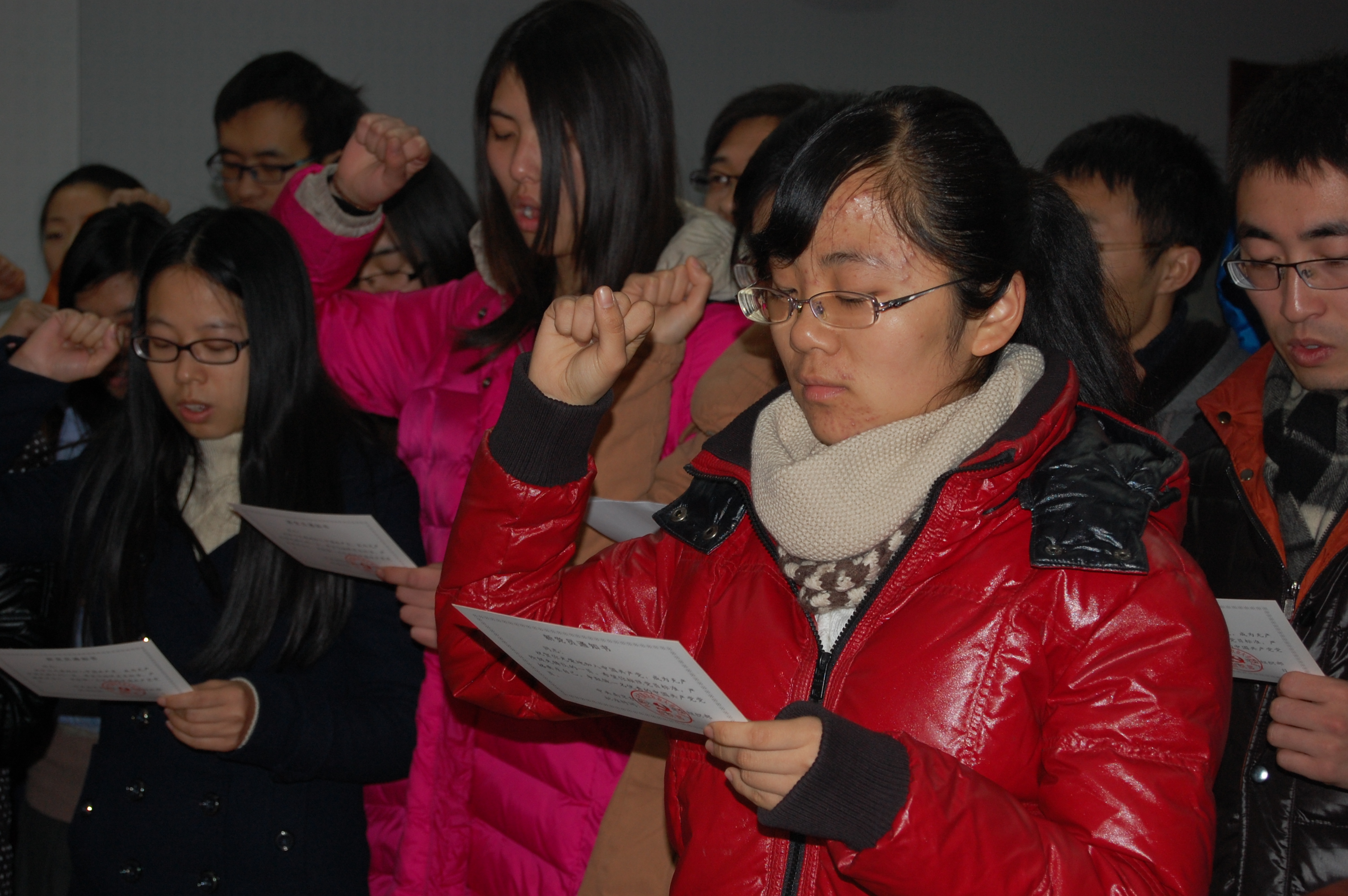 黄绍华带领全体新党员重温党课知识,帮助新党员们明确自身重任,加强党性锻炼,增加党性素养。针对入党程序及要求,黄绍华全面讲解了共产党的组织结构,使新党员对党组织有了初步了解,激励新党员们日后认真学习,努力工作,树立好榜样,做出更好的成绩。最后,院分党校秘书闫姝颖担任领誓人,带领所有新党员们进行入党宣誓,立志做一名合格的党员。