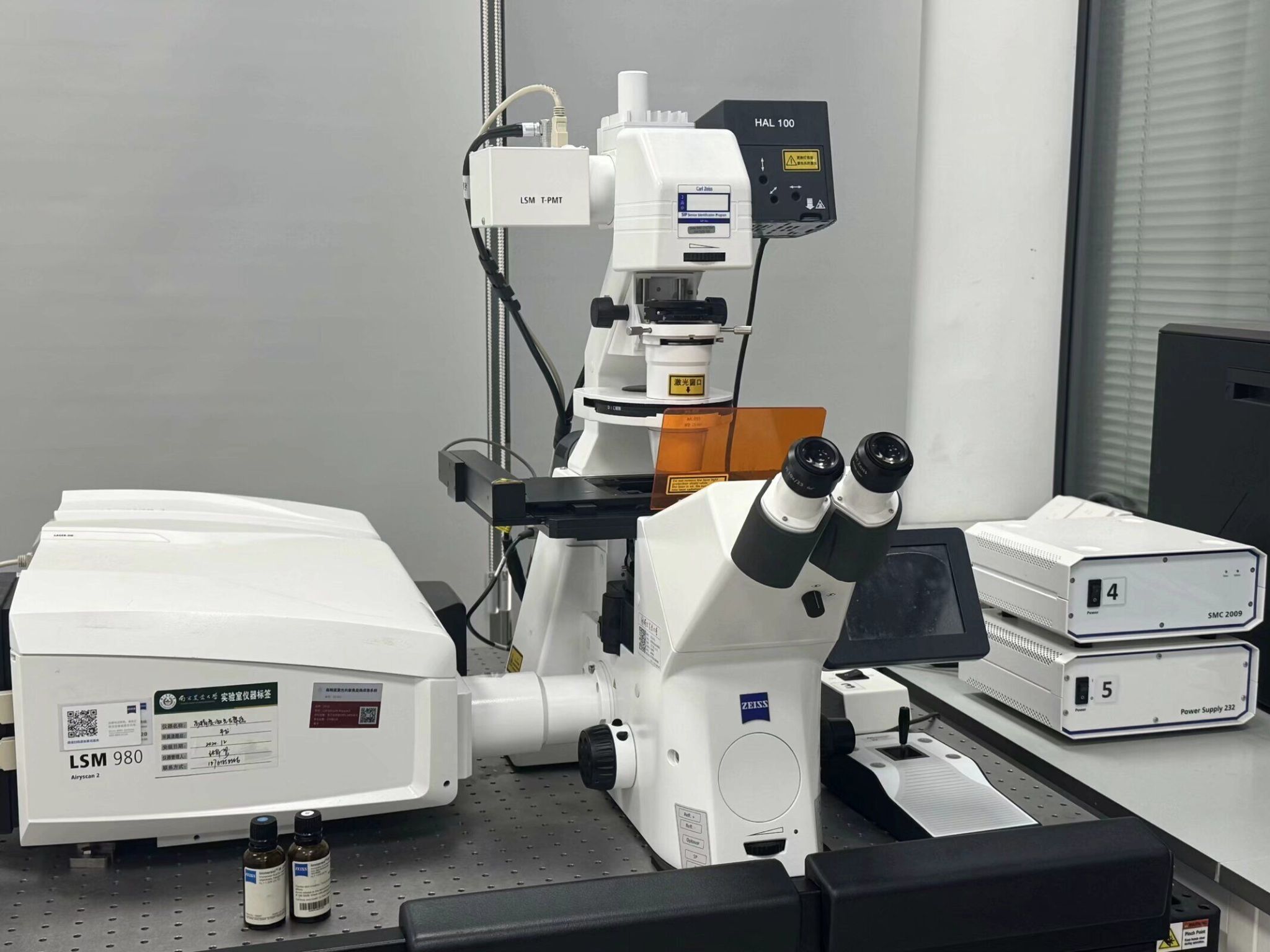 蔡司 LSM 980具有405/488/543/594/639nm五个激光器,配置了10x/20x/40x(W)/63x(W)/63 x(Oil)物镜。该设备可逐点扫描样品,也可以同时扫描多个点,将像素信息组合成图像获得具有高对比度和高分辨率的 xy z 光学切片。与此同时LSM 980 配备了 Airyscan 2 探测器,搭载32GaAsP检测器,实现高速超分辨成像。支持进行FRAPFRET实验。